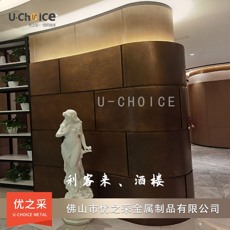 項目材料:不銹鋼蜂窩板,青古銅不銹鋼板,不銹鋼圓弧包柱,拉絲不銹鋼板