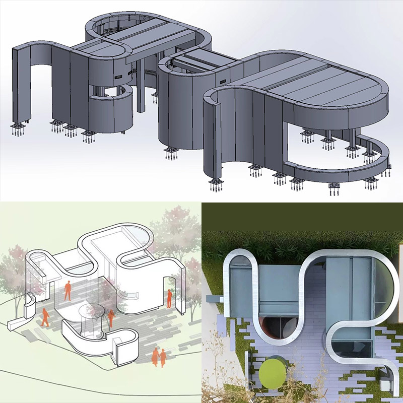 材料清單:鏡面不銹鋼,鋼結(jié)構(gòu),鏡面蜂窩板,拉絲玻璃,龍骨....
