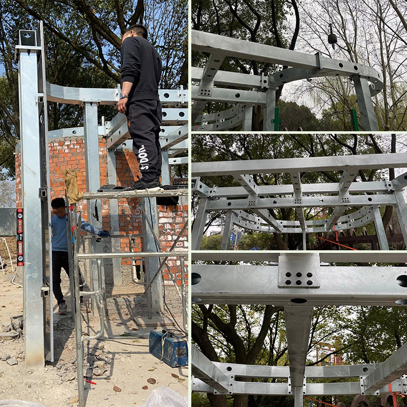 項目采用鋼結(jié)構(gòu)與鏡面不銹鋼進行安裝,達到高平整鏡面效果。